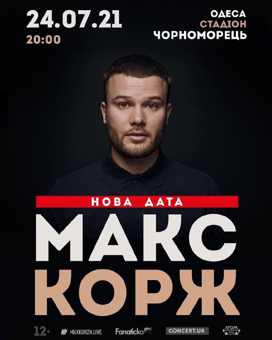 Белорусский исполнитель макс корж 24 июля выступил на концерте в одессе на стадионе «черноморец». Единственный летний концерт — одесса, 4 августа, стадион спартак. Единственный концерт в украине в следующем году. Макс корж в одессе 2021, 24 июля: Концерт официально перенесен с 25.07.2020 на 24.07.2021.